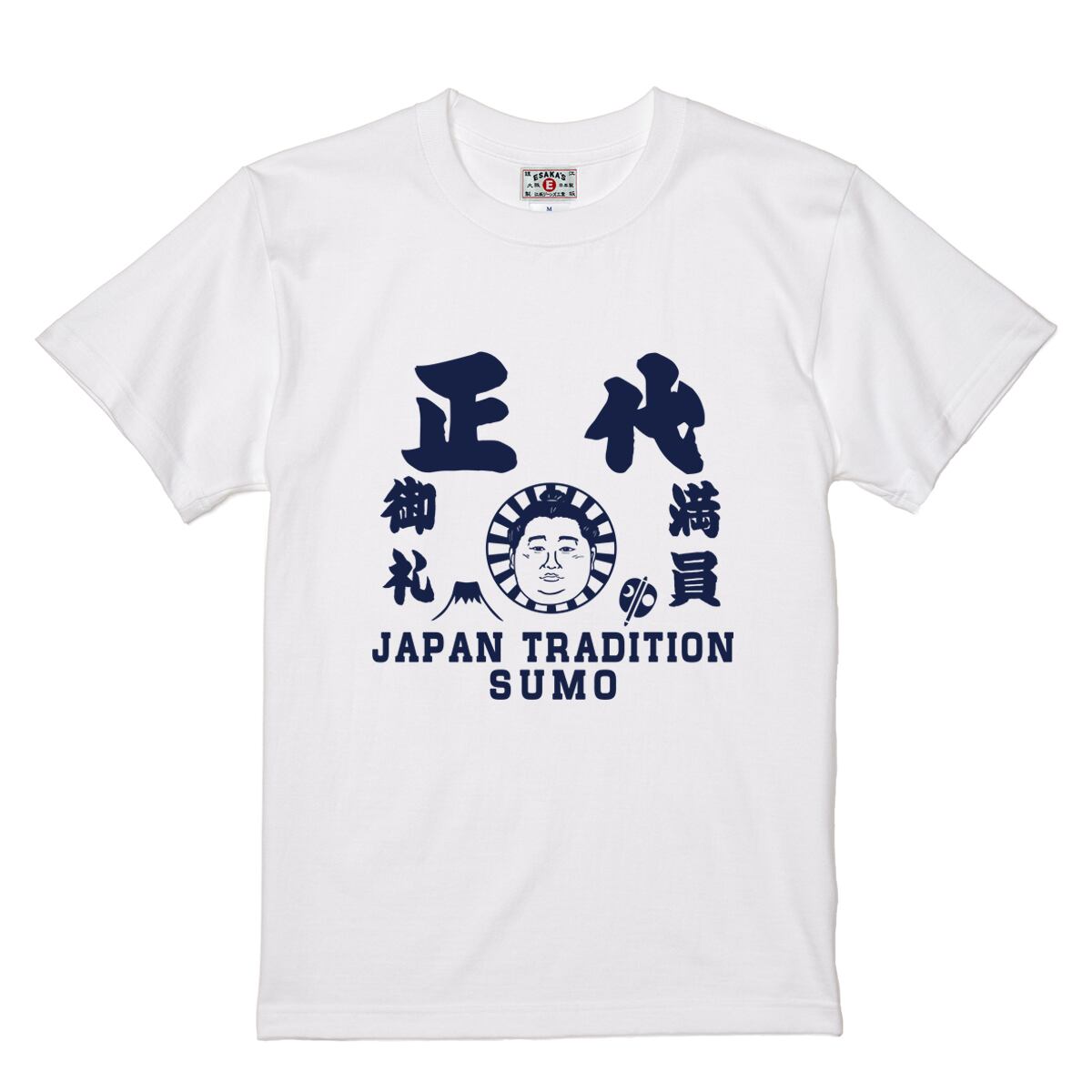 大相撲×江坂ジーンズ 力士イラスト WHITE 白 半袖Tシャツ 日本相撲協会承認