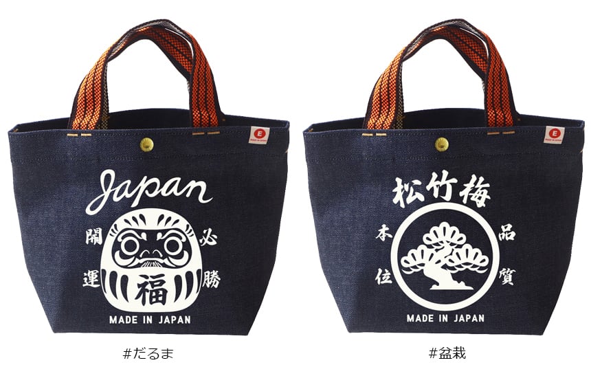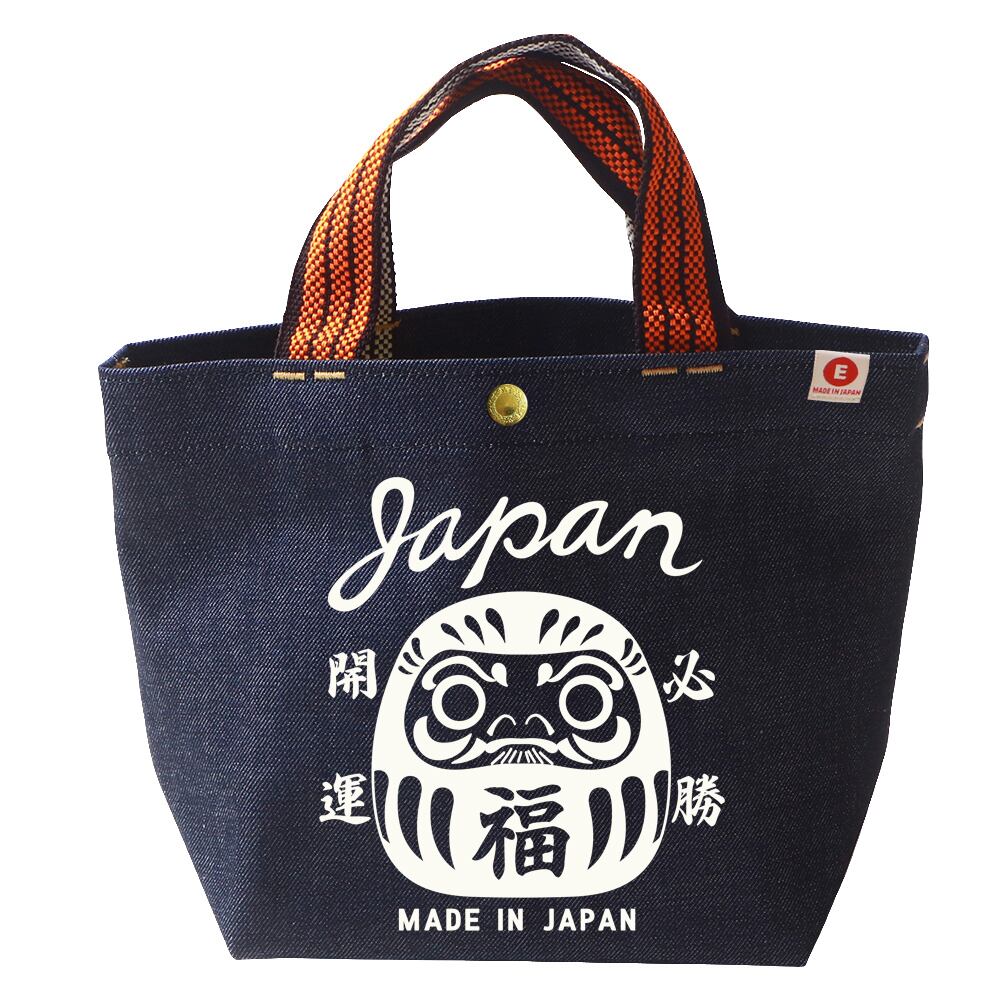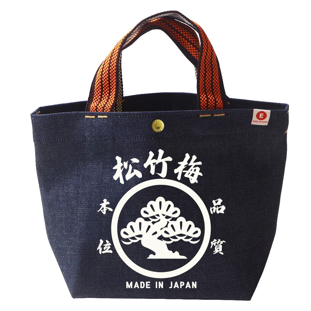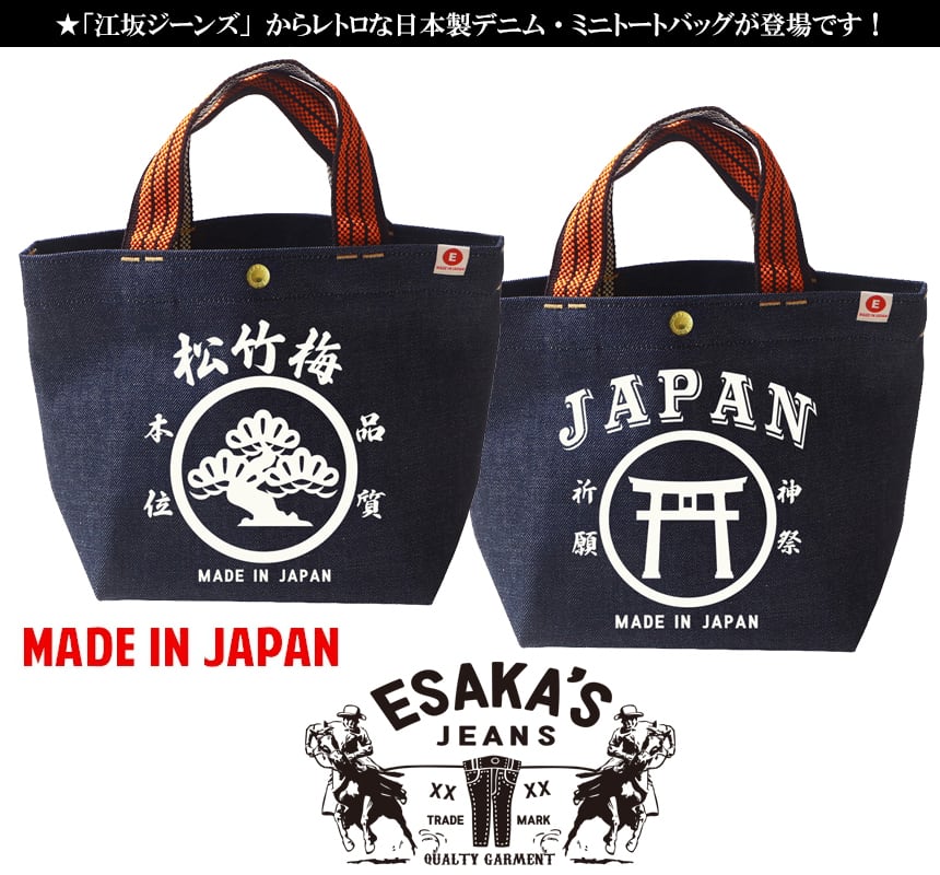 江坂ジーンズ・オレンジ取手「レトロ横丁」デニム・ミニトートバッグ 日本製 昭和レトロ made in Japan