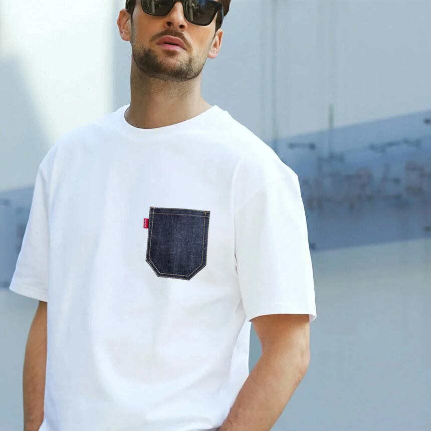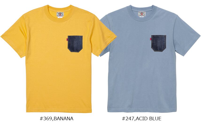 デニム生地を胸ポケットに使用した、人気のTシャツです。