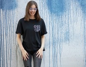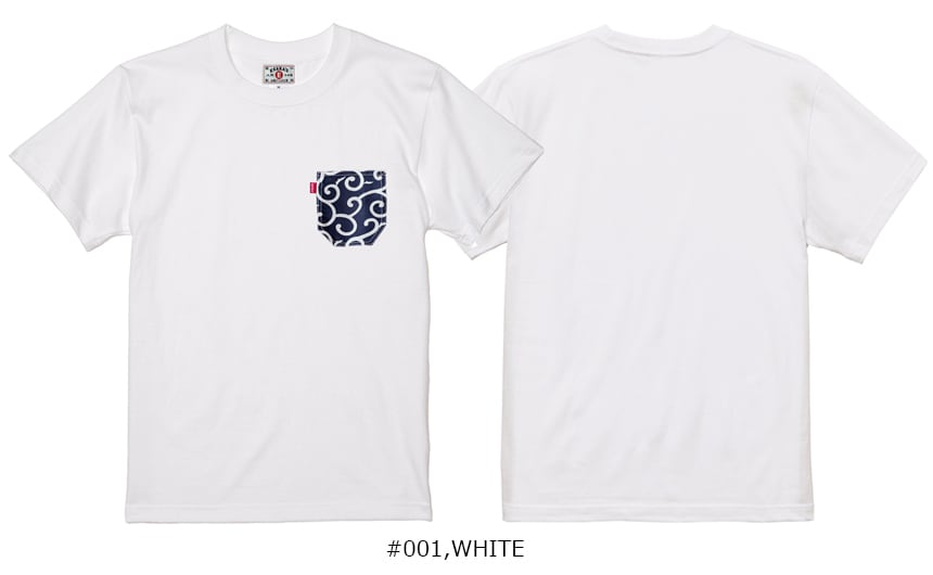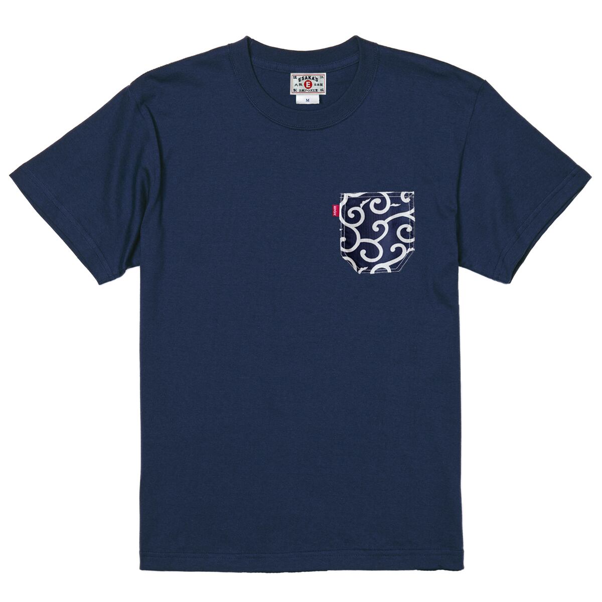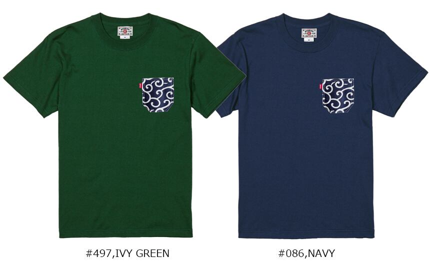 伝統的和柄の唐草模様生地を胸ポケットに使用した、人気のTシャツです。