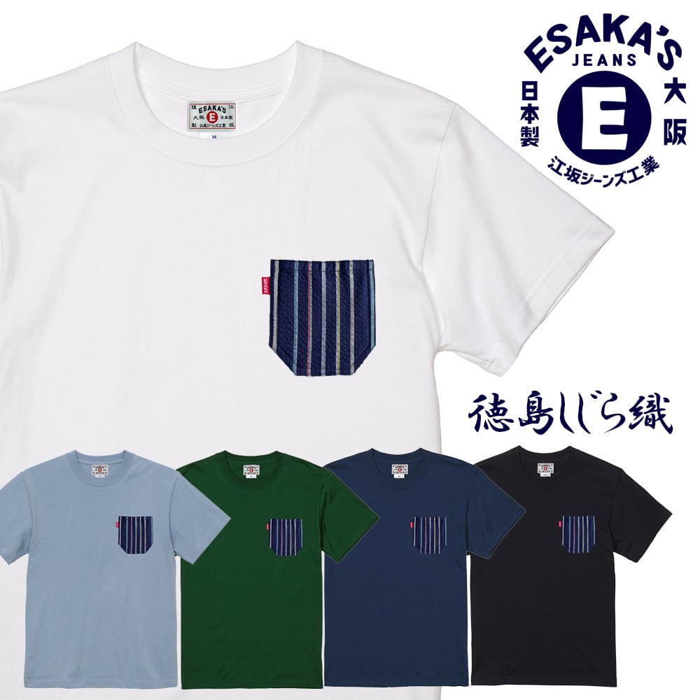 江坂ジーンズ 福島阿波しじら織 A柄 ストライプ胸ポケットTシャツ アメカジ ユニセックス