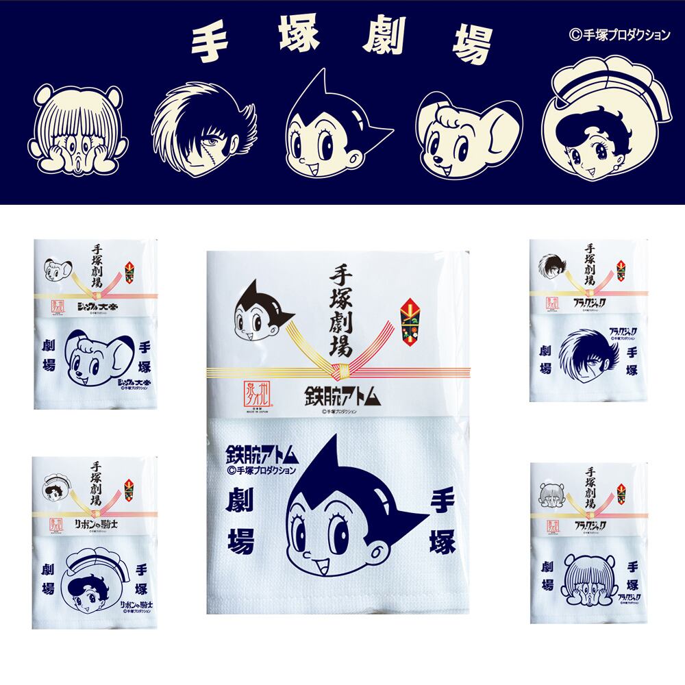 手塚劇場・泉州タオル 日本製 鉄腕アトム ブラック・ジャック・ジャングル大帝・リボンの騎士 各880円