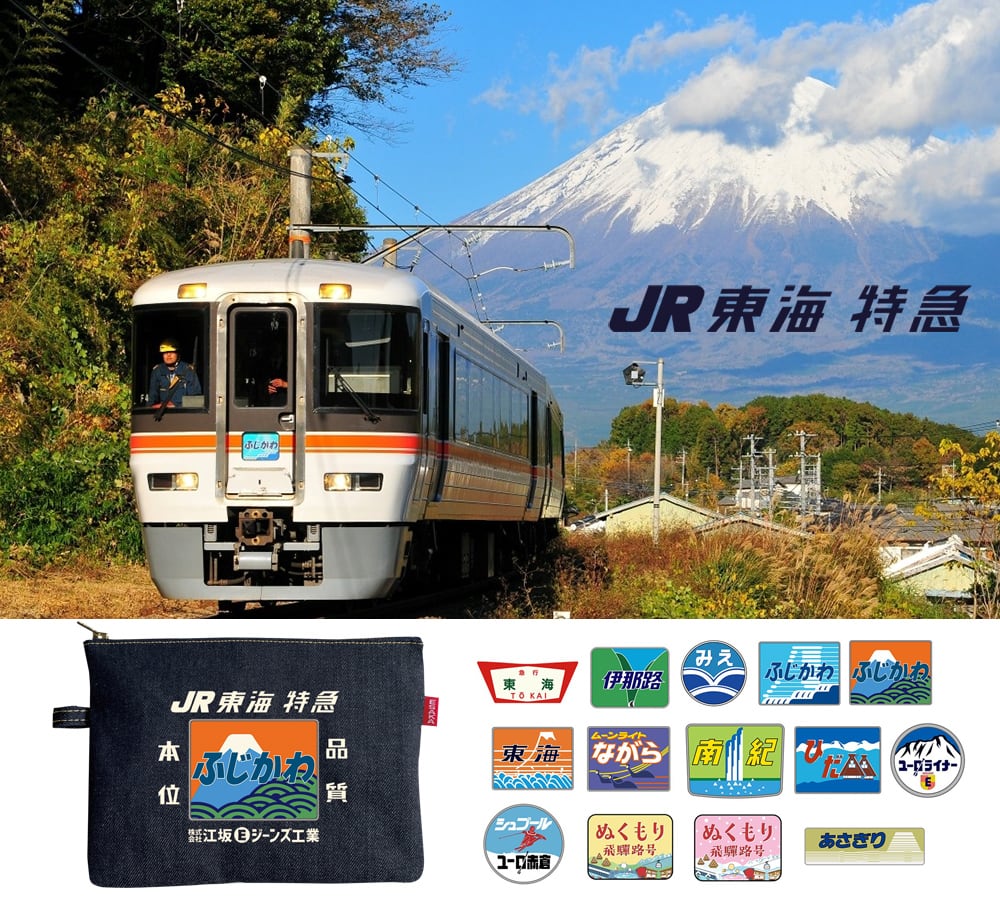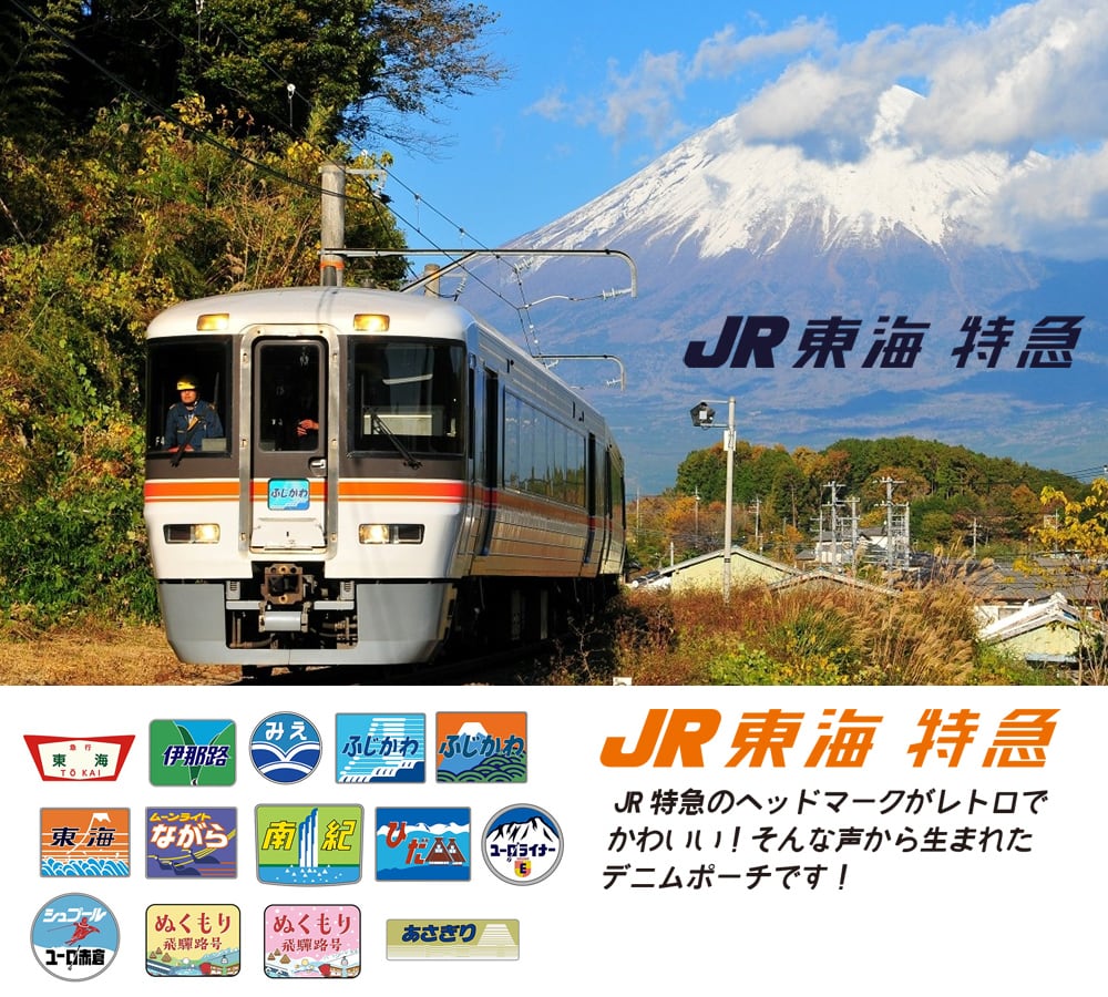 JR東海が保有する特急列車などのヘッドマーク・ロゴがかわいいデニムポーチです。