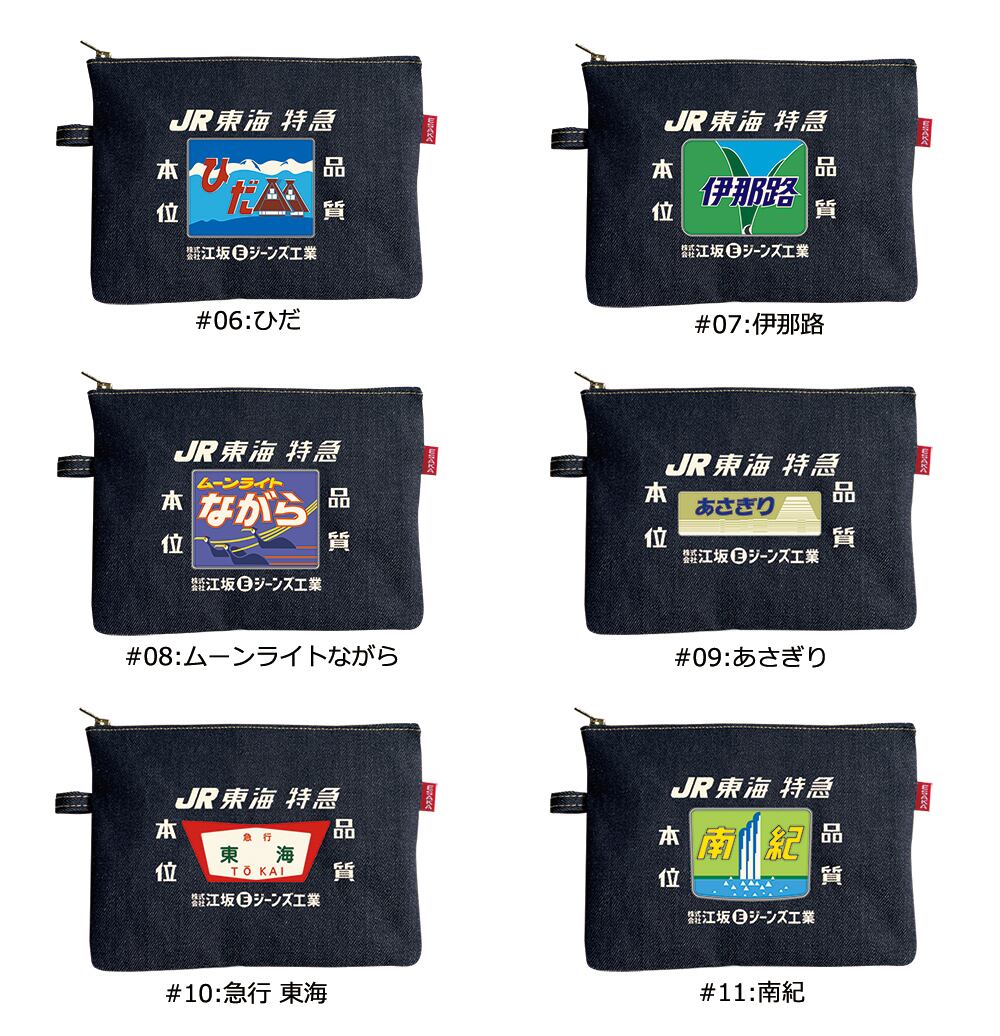 JR東海・特急・急行ヘッドマーク・レトロ・デニムポーチ