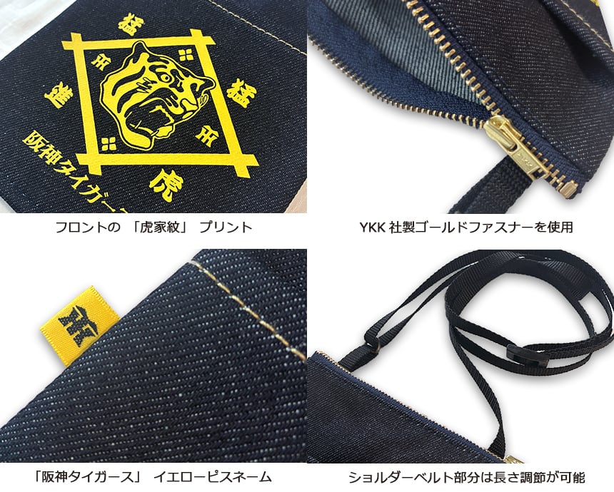 阪神タイガース×江坂ジーンズ 「虎・家紋ロゴ」デニムサコッシュ 阪神タイガース承認 日本製