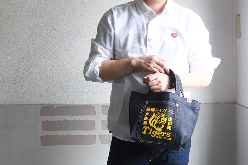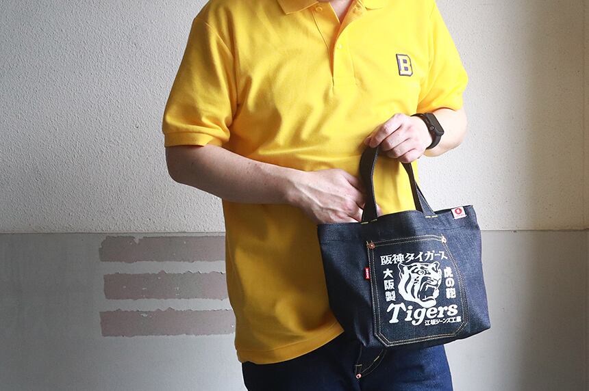tgsj-006 阪神タイガース×江坂ジーンズ 日本製 デニム・ミニ トートバッグ made in Japan 阪神タイガース承認 Billvan ランチバッグ・エコバッグ