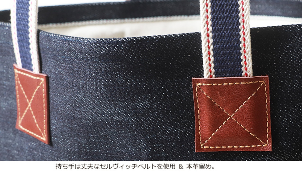 esj-047 江坂ジーンズ 日本製 24oz セルヴィッジデニム・トートバッグ 赤耳ポケット Billvan made in japan デニムバッグ アメカジ