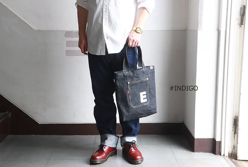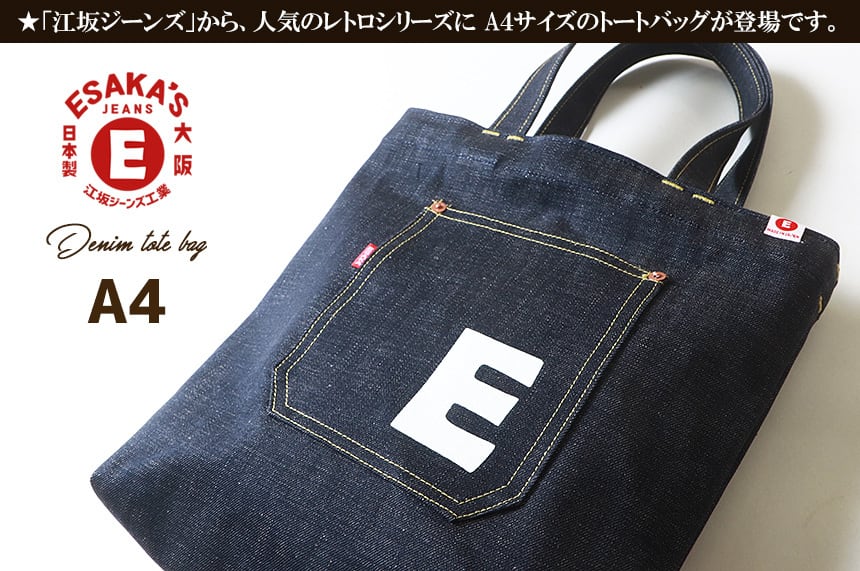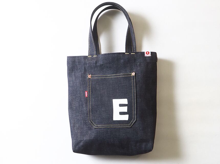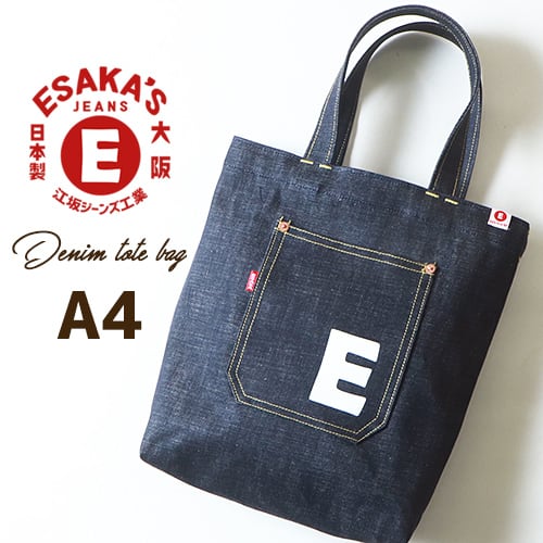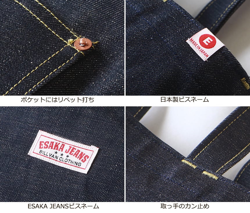 esj-b007e 江坂ジーンズ 日本製 A4サイズ 江坂 E柄 デニム・トートバッグ made in Japan Billvan スクールバッグ・エコバッグ