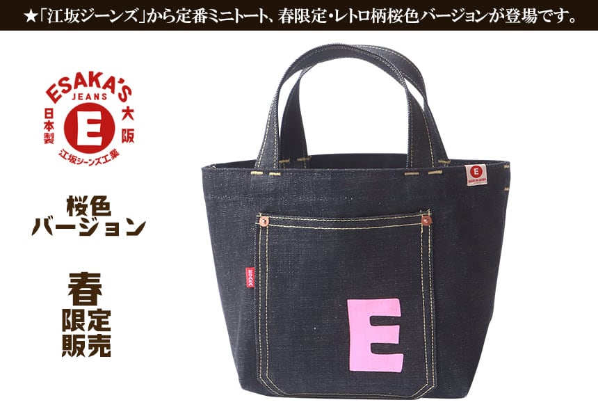 esj-063 江坂ジーンズ 日本製 春限定 桜色 E柄 デニム・ミニ トートバッグ