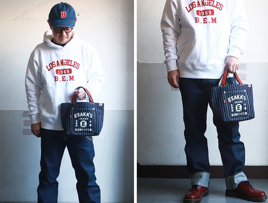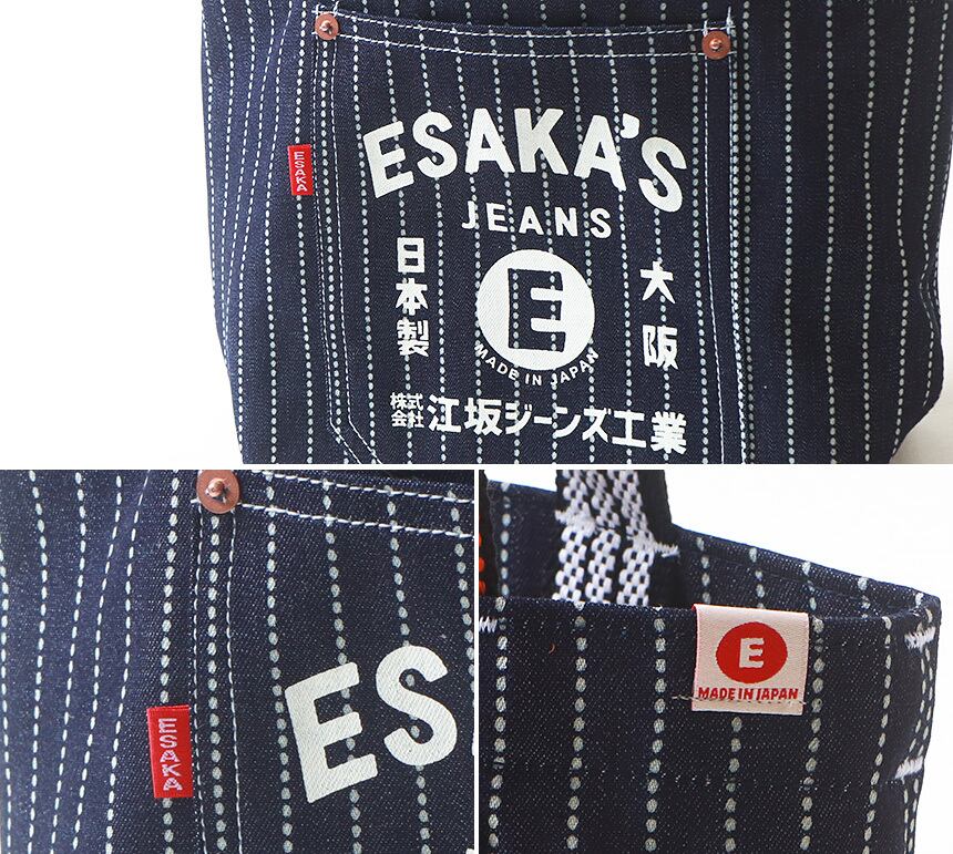esj-060 江坂ジーンズ 日本製 ウォバッシュデニム 昭和レトロ・ミニ トートバッグ男女兼用 made in Japan