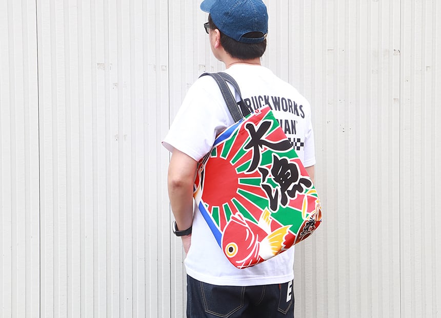 縁起の良い「大漁旗」柄で作成した日本製帆布トートバッグのご紹介です!