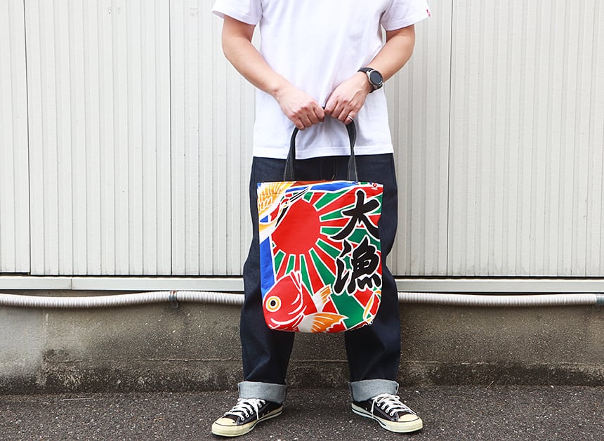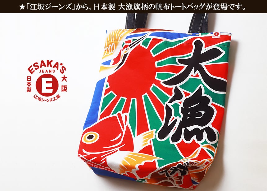 esj-066 江坂ジーンズ 日本製 大漁旗柄 帆布トートバッグ アメカジ