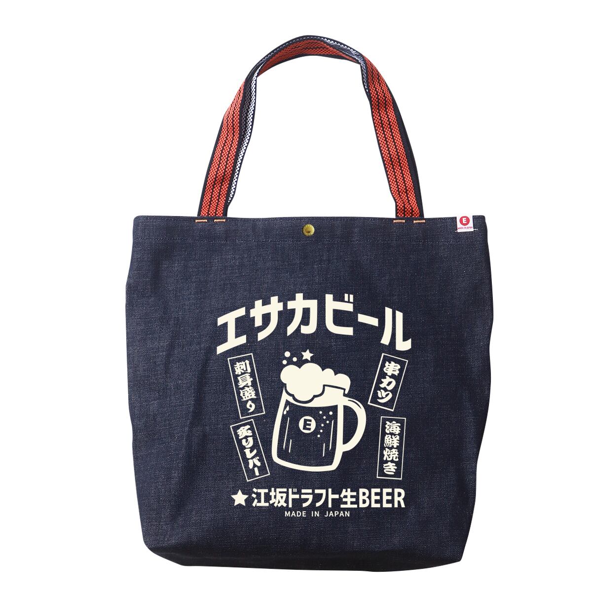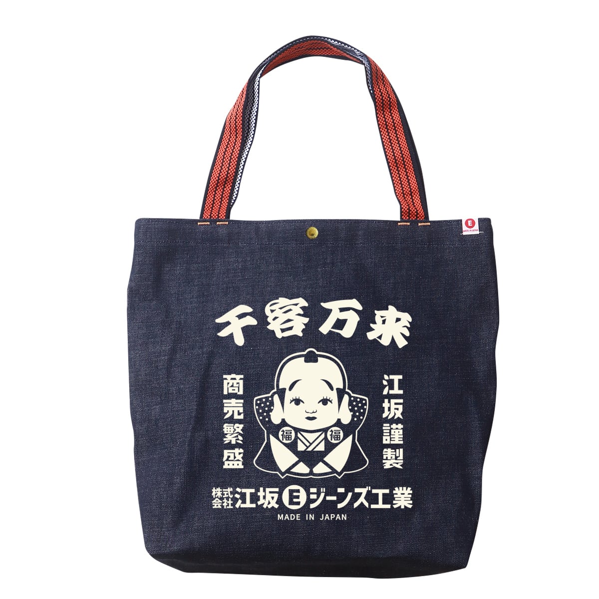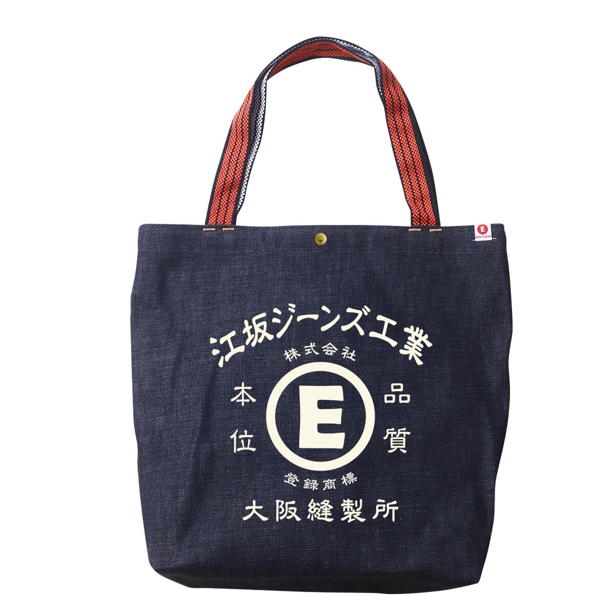 江坂ジーンズ・オレンジ取手「レトロ横丁」デニム肩掛トートバッグ 日本製 昭和レトロ made in Japan