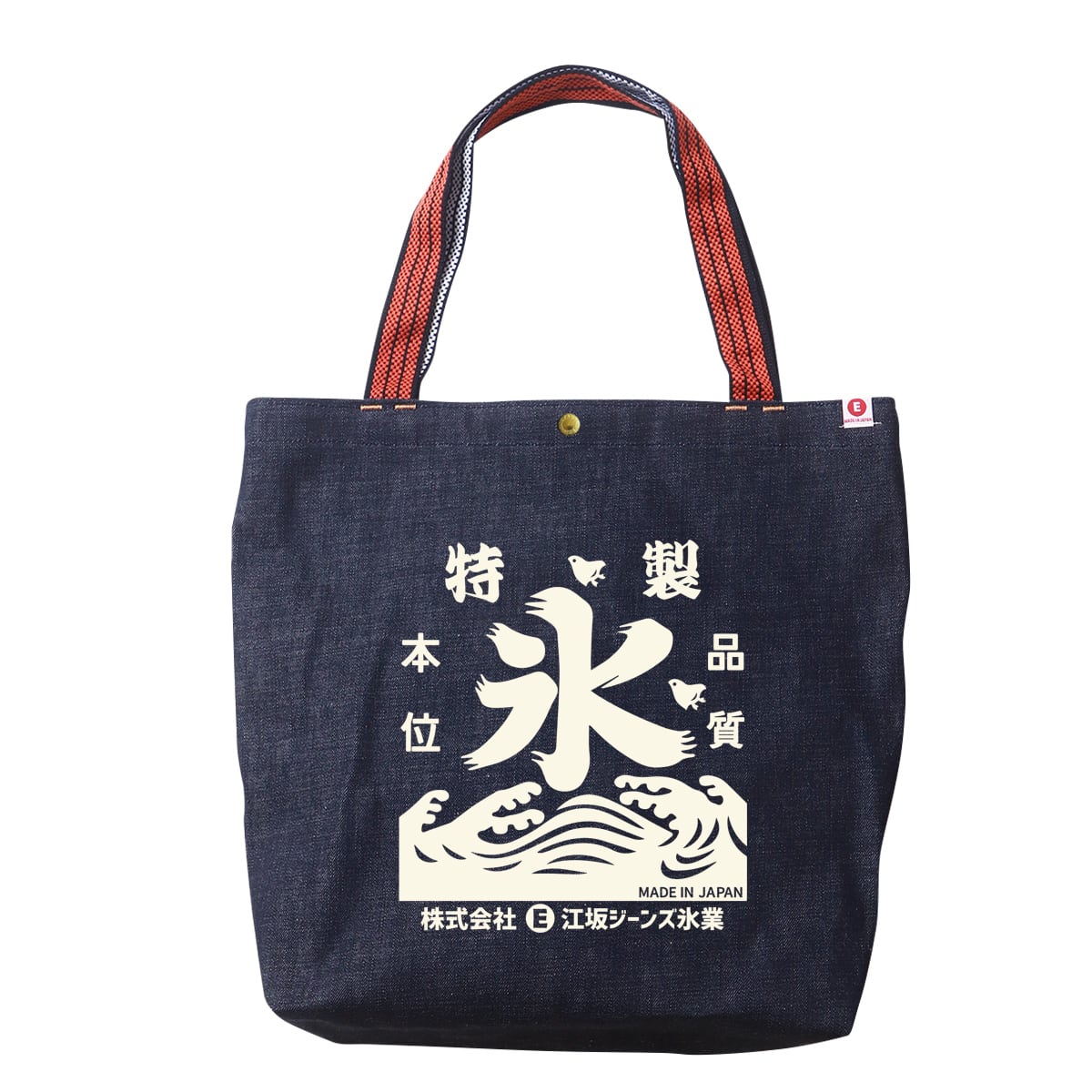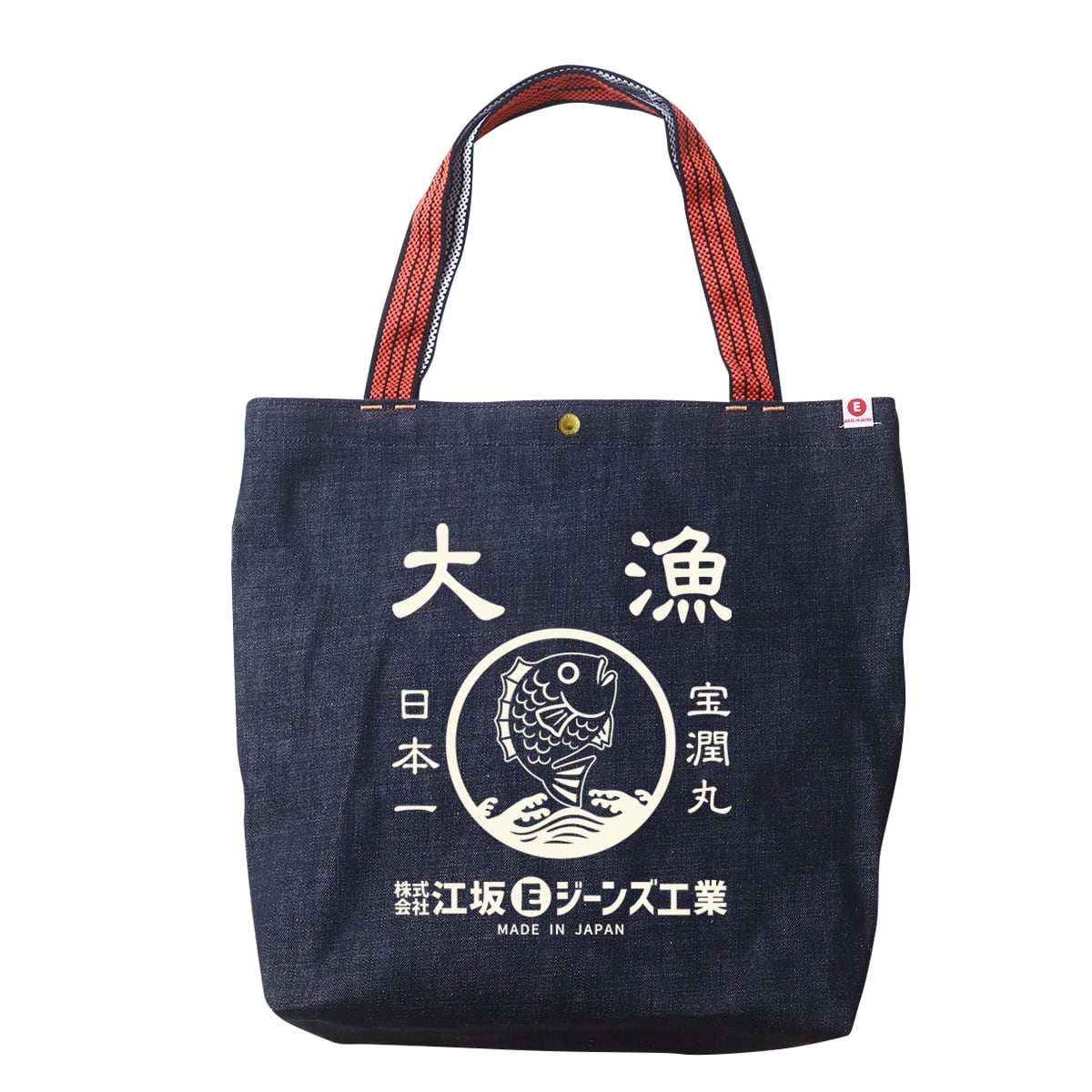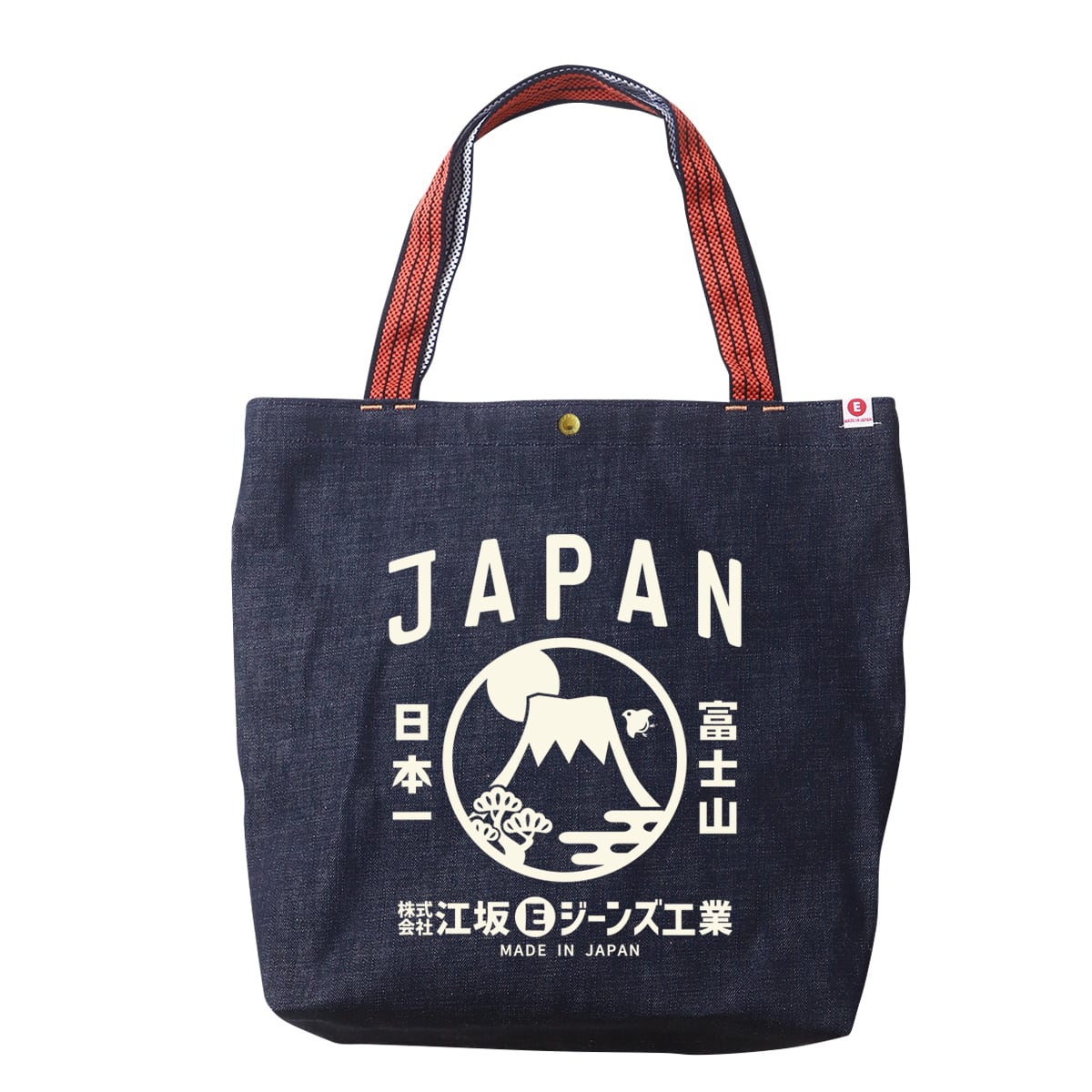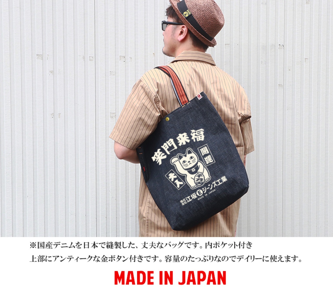 江坂ジーンズ・オレンジ取手「レトロ横丁」デニム肩掛トートバッグ 日本製 昭和レトロ made in Japan